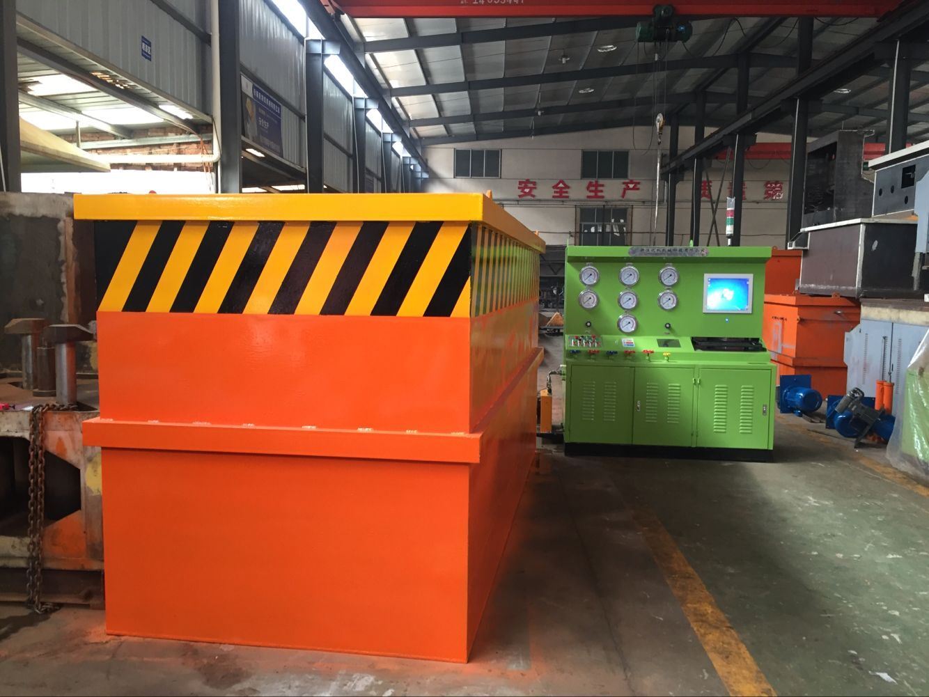 JWZQ型閥門液壓試壓機(jī)是我公司在積累多年生產(chǎn)閥門檢測設(shè)備技術(shù)的基礎(chǔ)上按照國家GB/T1 3927 — 92《通用閥門壓力試驗》和ZBJl6006-90《閥門的試驗與檢測》的標(biāo)準(zhǔn)規(guī)范要求,是公司自主研發(fā)的新一代沉水式液壓閥門試壓機(jī)并擁有發(fā)明技術(shù)專利知識產(chǎn)權(quán),專利號ZL2016 1 0260566.7本機(jī)最大特點是將被測試工件浸入水中,在測試過程中可方便目測測試工作是否有泄漏,