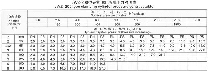 The test range of valve nominal diameter and nominal pressure for JWZ-1000 model
