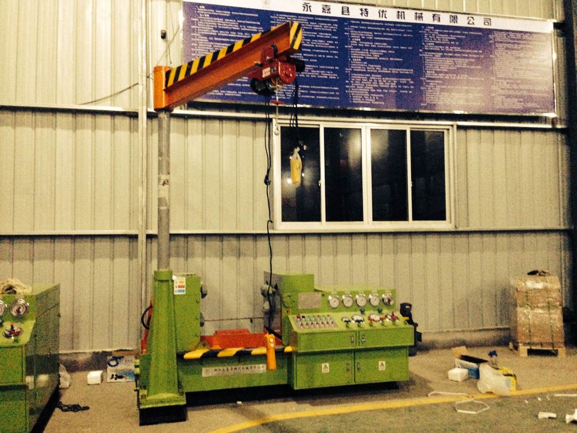 三、接通電源,按油泵啟動(dòng)按鈕,檢查電機(jī)轉(zhuǎn)動(dòng)方向,是否正確(順時(shí)針方向)進(jìn)行5—1 O分鐘空載運(yùn)轉(zhuǎn)后,調(diào)節(jié)油泵壓力在5 0MPa進(jìn)行試機(jī),各種動(dòng)作,檢查各管路有無(wú)泄漏,發(fā)現(xiàn)不良現(xiàn)象,應(yīng)立即停機(jī)排除。